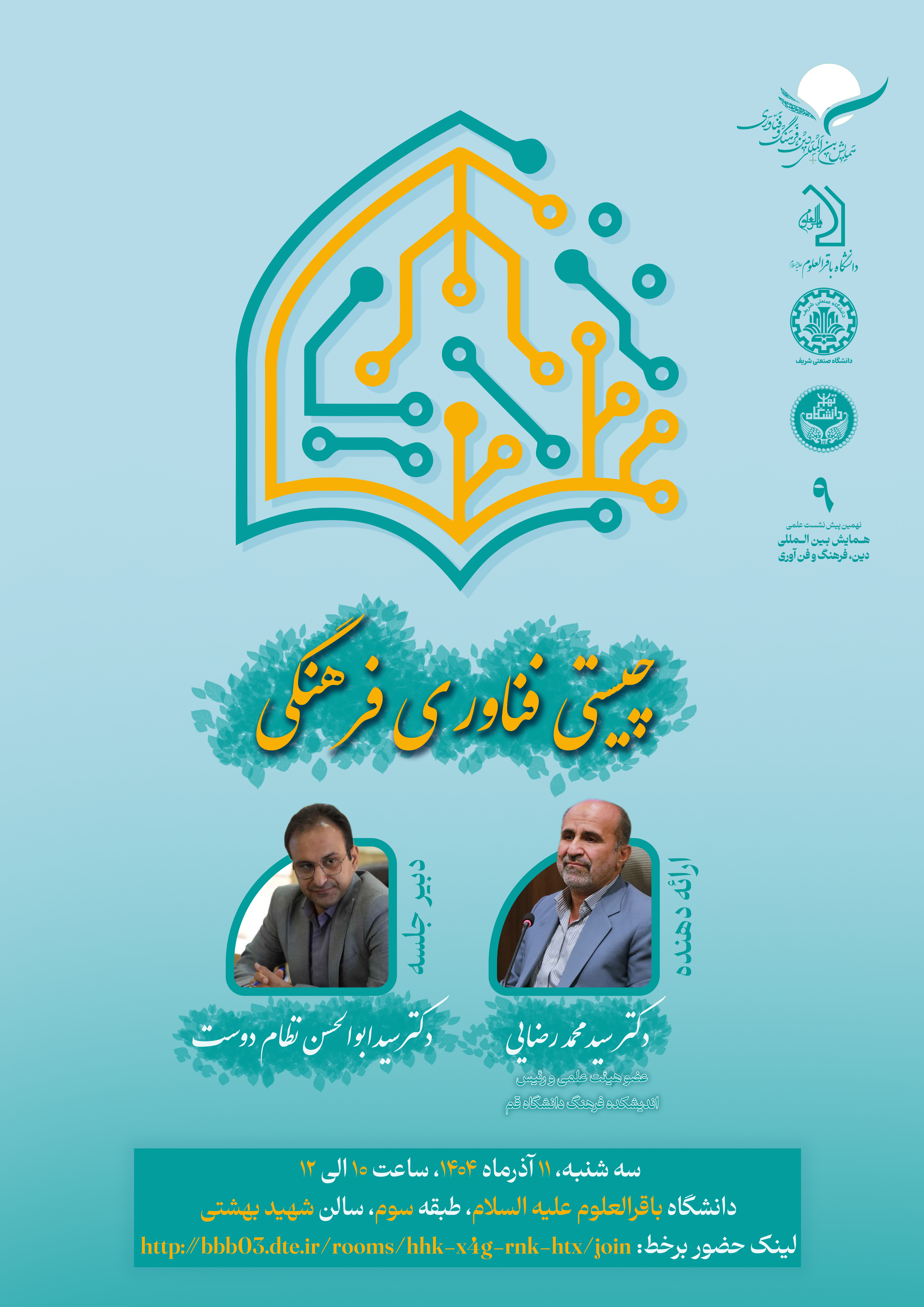 The ninth scientific pre-session of the Second International Conference on Religion, Culture, and Technology will be held on Tuesday, December 2, 2025, featuring a presentation by Dr. Seyed Mohammad R...