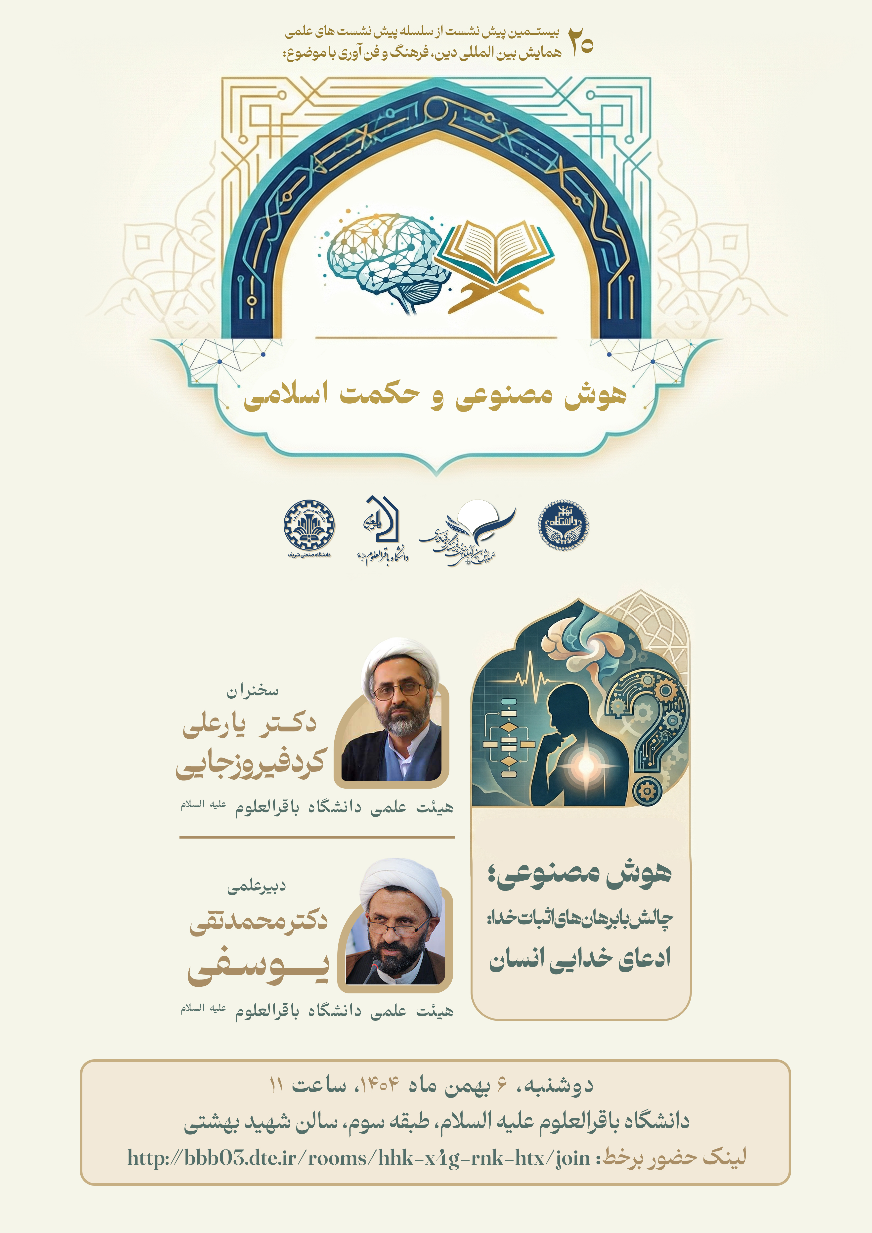 بیستمین پیش نشست علمی از دومین همایش دین، فرهنگ و فناوری و سومین جلسه از سلسله جلسات هوش مصنوعی و حکمت اسلامی، ...