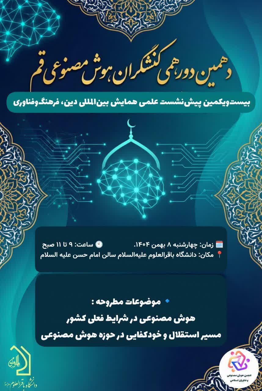 دهمین پیش نشست علمی از دومین همایش بین المللی دین، فرهنگ و فناوری، در تاریخ 20 آذر ماه از ساعت 10، در دانشگاه باق...